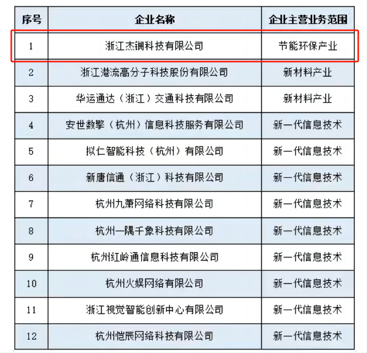 近日,蕭山區(qū)經(jīng)信局公布了2022年度蕭山區(qū)重點(diǎn)支持戰(zhàn)略性新興產(chǎn)業(yè)企業(yè)名單,全區(qū)128家企業(yè)上榜,杰锎科技作為節(jié)能環(huán)保產(chǎn)業(yè)名列其中。