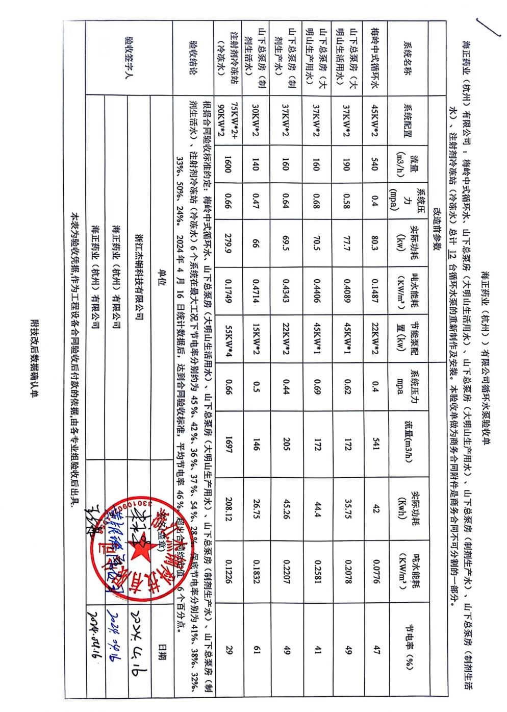 此期項目采用我司1.0節能改造技術,6個系統共計12臺循環水泵,平均節電率達46%,超出合同約定值6個百分點,其中一個制劑生活水系統節電率更是高達61%。