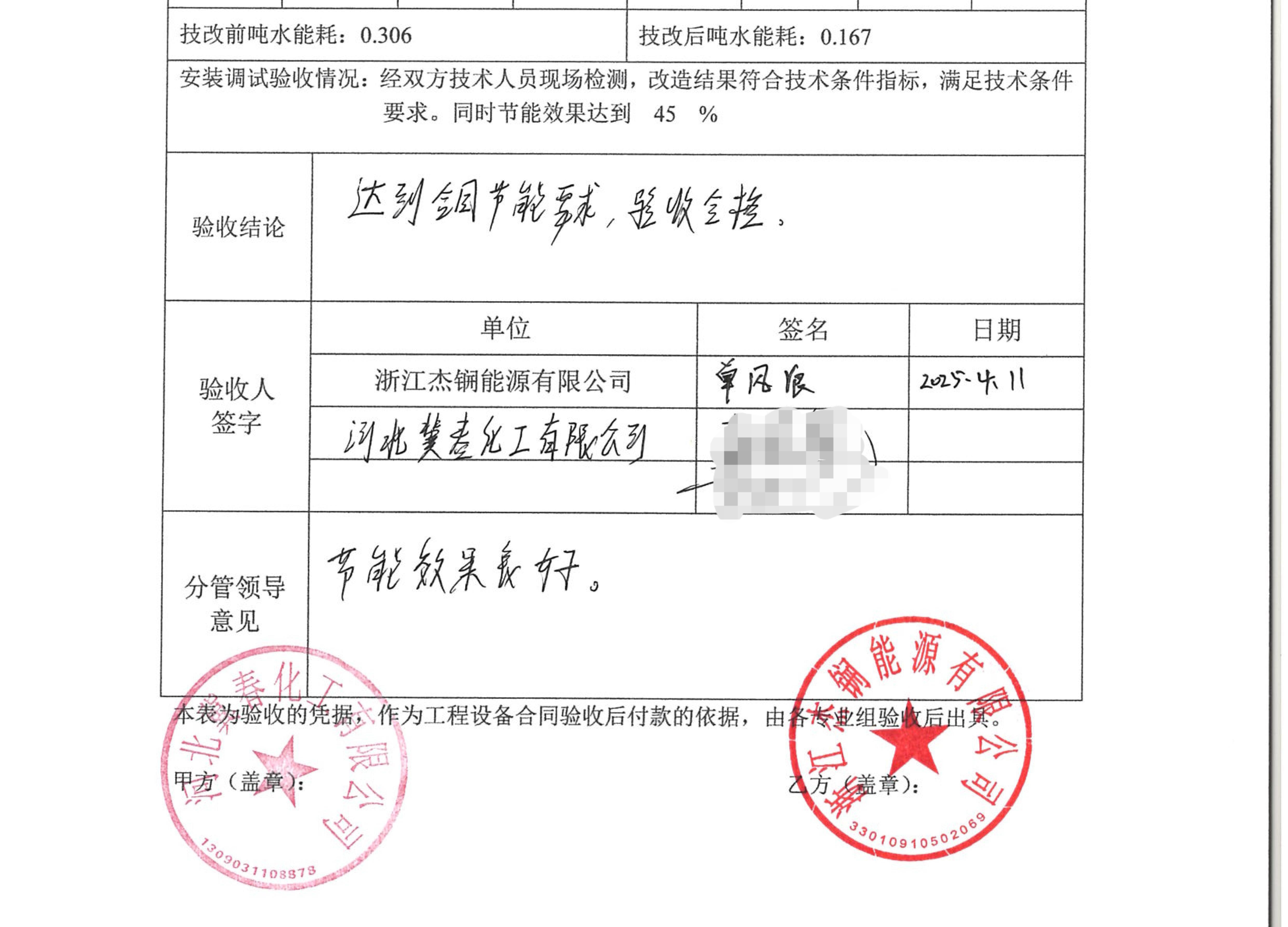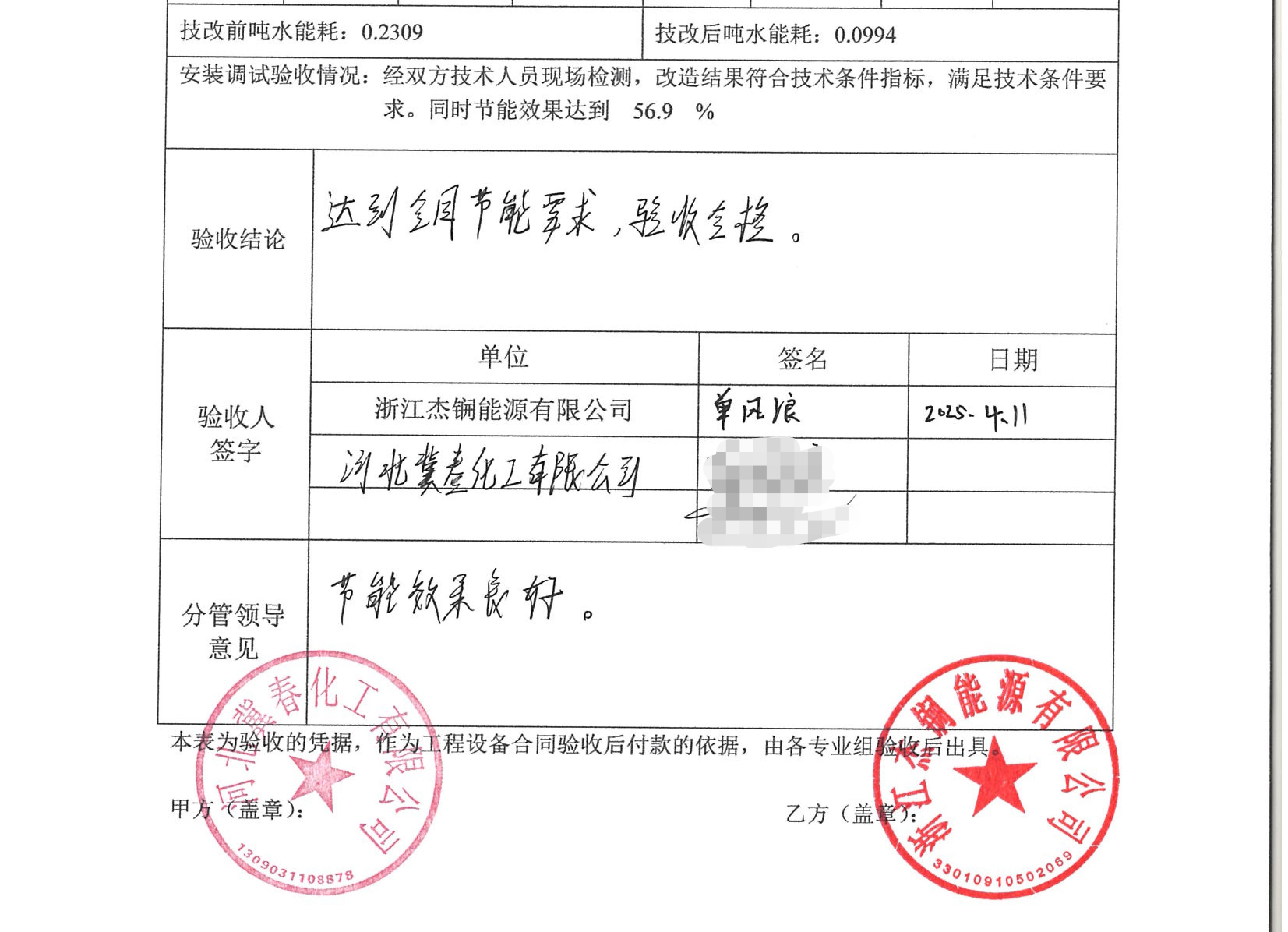 數月施工與調試,冀春化工節能改造項目經過各方人員對系統各項指標的檢測和評估,改造后循環水系統運行穩定,節電率達45%和56.9%,順利驗收。